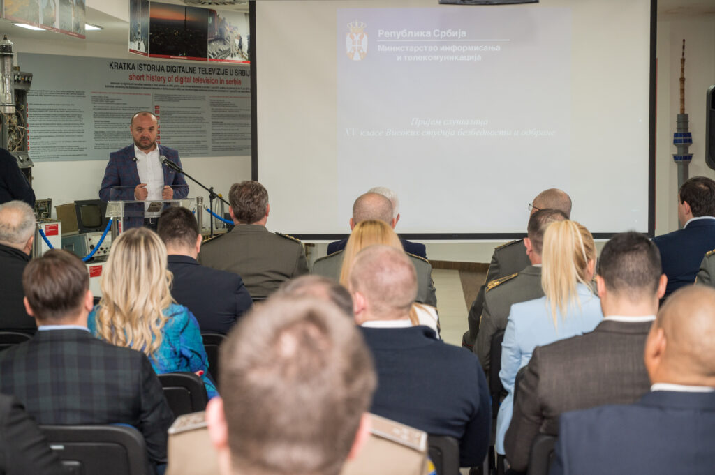 Delegacija 15. klase Škole nacionalne odbrane „Vojvoda Radomir Putnik“ Univerziteta odbrane u Beogradu boravila je danas u radnoj poseti kompleksu Avalski toranj, gde se upoznala sa tehničkim, istorijskim i savremenim značajem ovog objekta za sistem elektronskih komunikacija u Republici Srbiji.